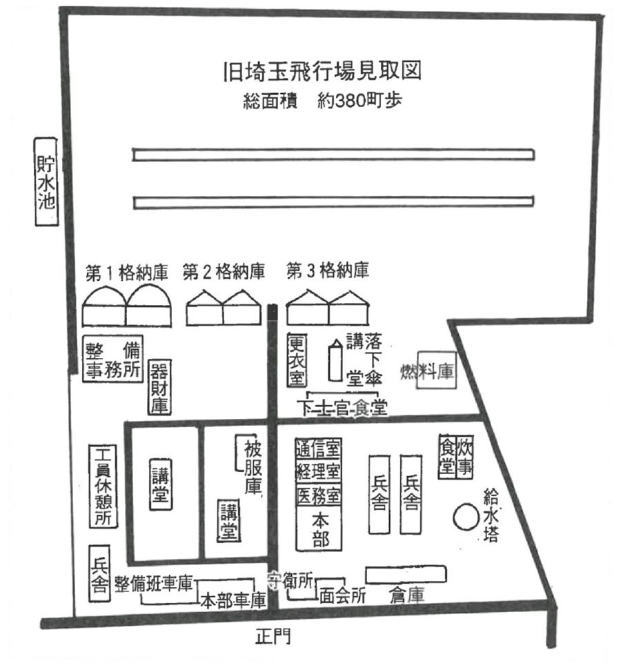 昭和10年代に入ると、軍備拡充の重点は航空兵力の拡張におかれた。陸海軍の飛行場は、終戦時、関東地方に64カ所あった。この飛行場もそのひとつである。主に藤田農場の敷地の雑木林を切り開き、昭和16(1941)年、約280ヘクタールの面積を持つほぼ正方形の飛行場が完成した。滑走路のほか、事務棟・兵舎(学生宿舎)・格納庫などがあった。