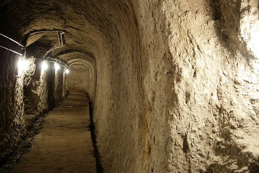 建設は昭和20(1945)年6月から始まり、24時間3交代の突貫態勢で進められた。総勢250人ほどが作業にあたり、主線壕と9本の支線壕の総延長は721メートルに及んだ。終戦時には未完成で、実際に司令部として使われることはなかったが、その後も作業は進められ、全ての壕の貫通をもって作業は中止となった。八幡山の山上には高射砲陣地が設けられ、地下司令部と併せて山全体が要塞化していた。現在、崩落の危険があるため、壕の内部は公開されていない。