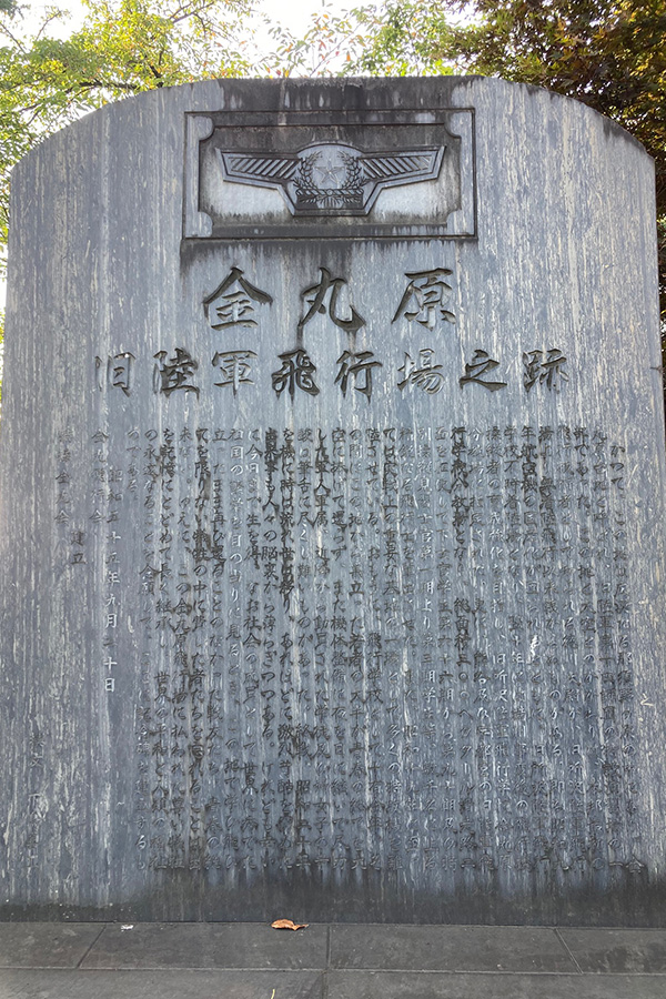 明治41(1908)年、宇都宮市に第14師団が設置されると演習場が必要になり、明治43(1910)年に金丸原に屋舎の建設が始まり、2年後に竣工した。その後、陸軍航空隊が本格的な軍備拡充を始めた昭和9(1934)年に、所沢陸軍飛行学校の不時着陸場となり、翌昭和10(1945)年に同校金丸原分教場となったのが金丸原飛行場の始まりと伝わっている。
